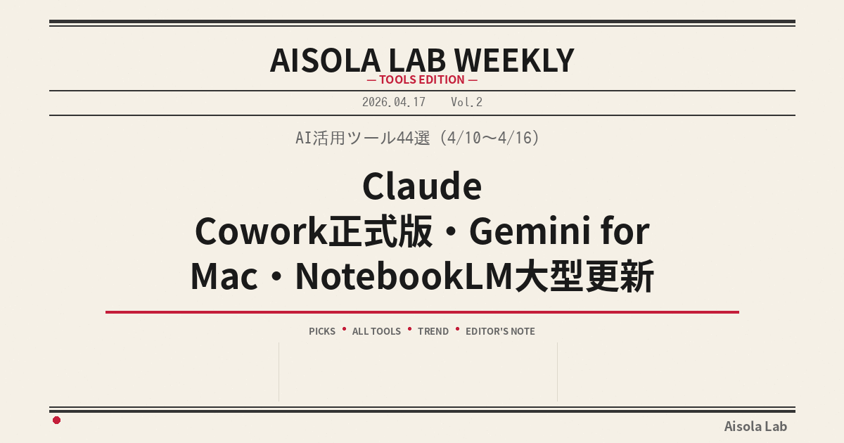 | NotebookLM | 500ページを1時間で分析。ポイントは「聞く順番」 | 無料 / ブラウザ |