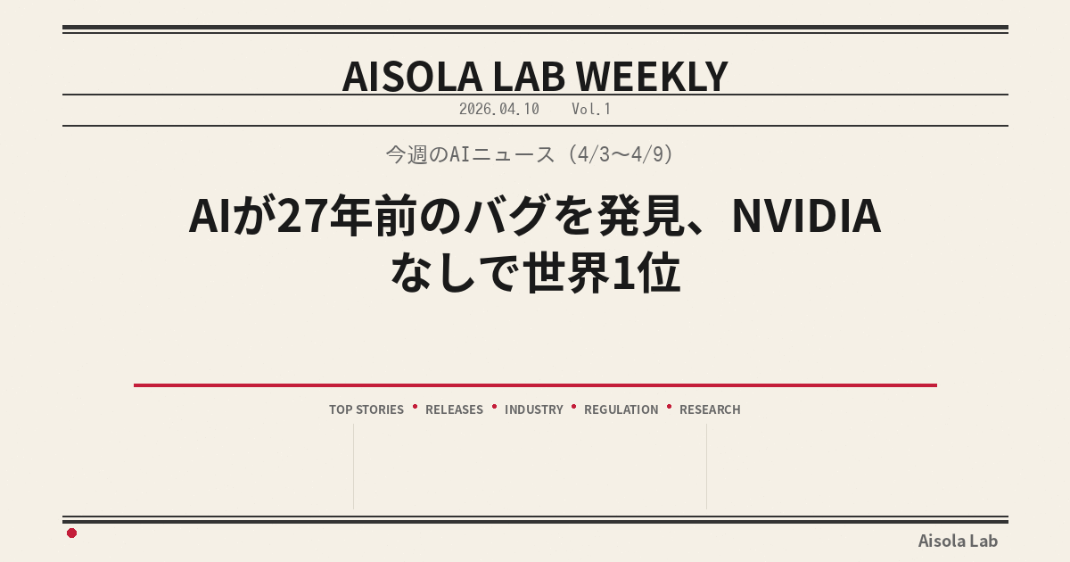 今週のAIニュース(4/3〜4/9)|AIが27年前のバグを発見、NVIDIAなしで世界1位