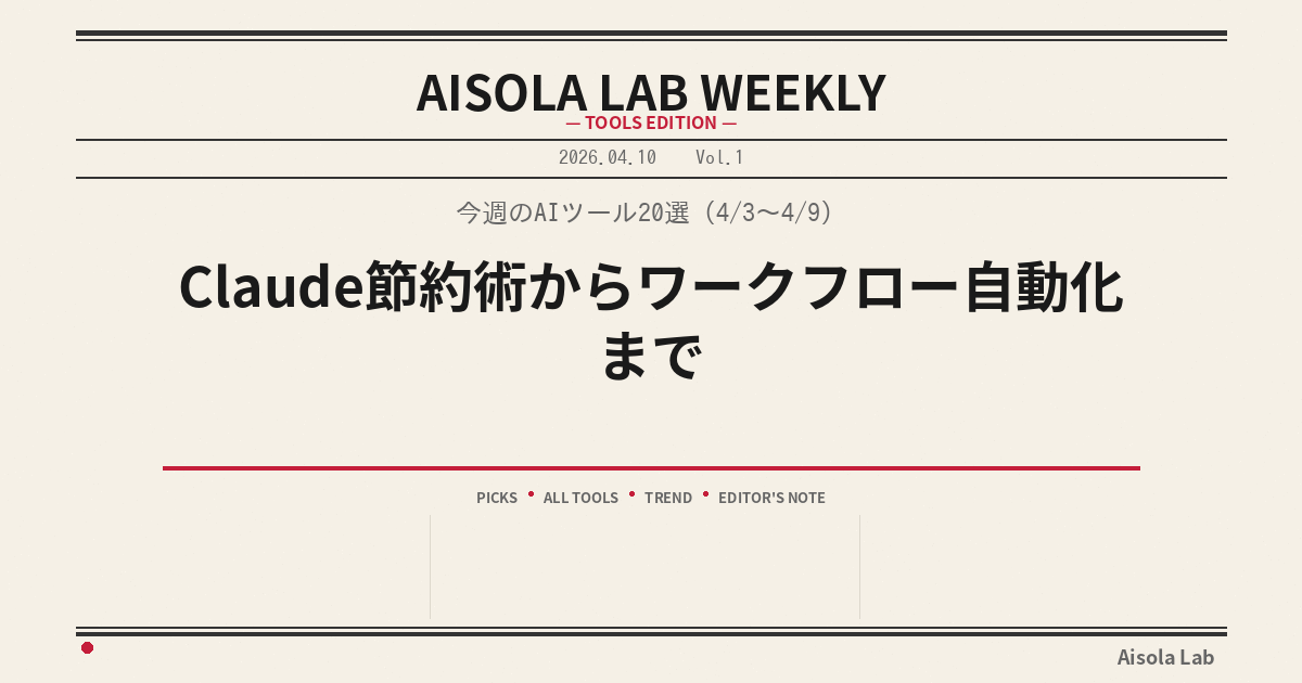 今週のAIツール20選(4/3〜4/9)|Claude節約術からワークフロー自動化まで