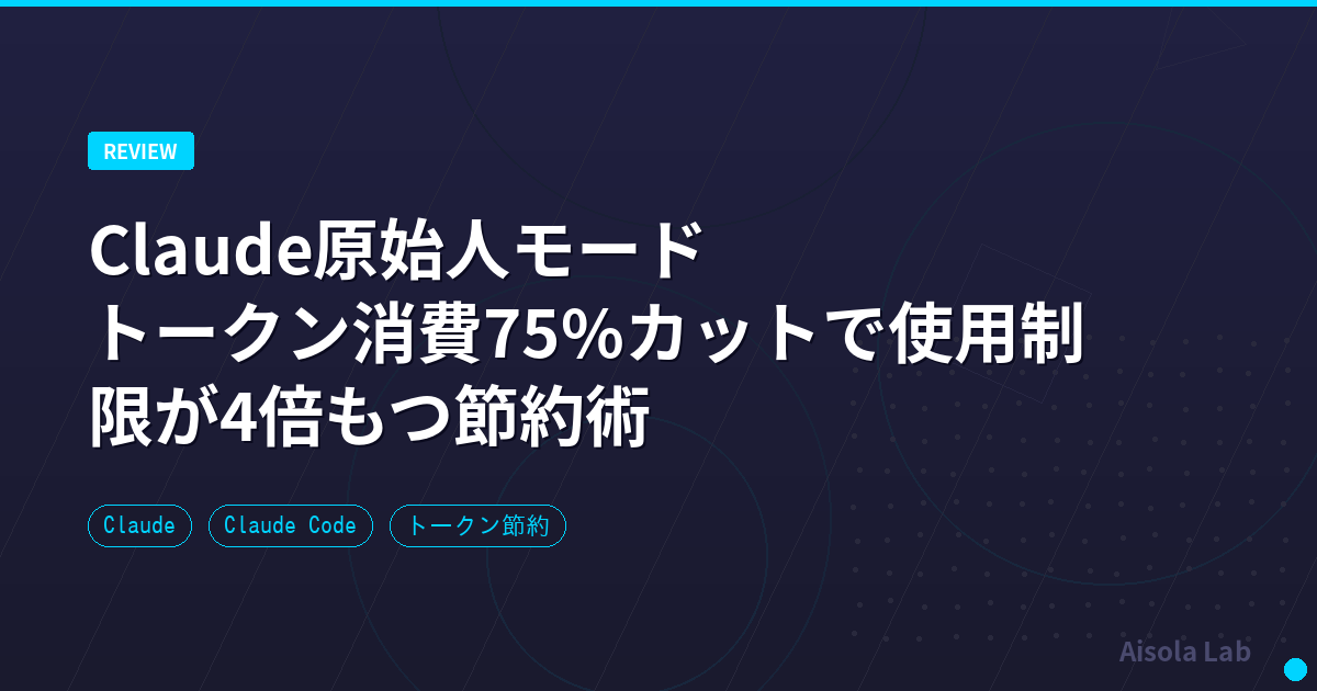 REVIEWClaude原始人モードトークン消費75%カットで使用制限が4倍もつトークン節約75%カットClaude Code Claudeに「原始人みたいに喋って」と指示するだけで、トークン使用量が75%減る。同じ作業でも制限到達までの時間が約4倍に伸びる。 仕組みはシンプルで、Claudeの「丁寧すぎる出力」をカットするだけ。通常180トークンかかるウェブ検索1回が、原始人モードだと45トークンで済む。 この記事では、原始人モードの仕組み・設定方法・実際の節約効果を解説する。Claudeの使用制限にす ...