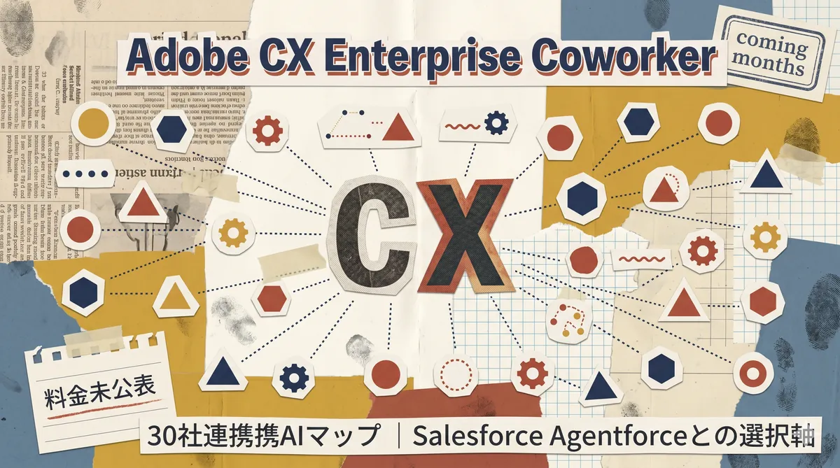 この記事の3行結論 Adobeは2026年4月20日のAdobe Summitで、AIモデル7社・代理店6社・SIer9社ほか計30社以上のパートナーを束ねた「CX Enterprise」へリブランドし、統括エージェント「CX Enterprise Coworker」を発表 ただし一般提供は「coming months」、日本語対応・日本提供時期は明記なし、料金はcredit-basedに移行中で未公表 ハブ戦略の規模は事実だが、Adobe依存深化のリスクとSalesforce Agentforceとの選 ...
