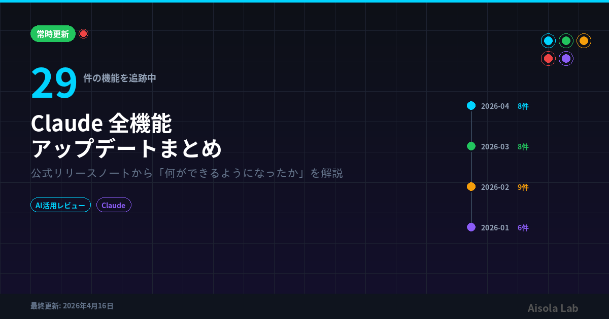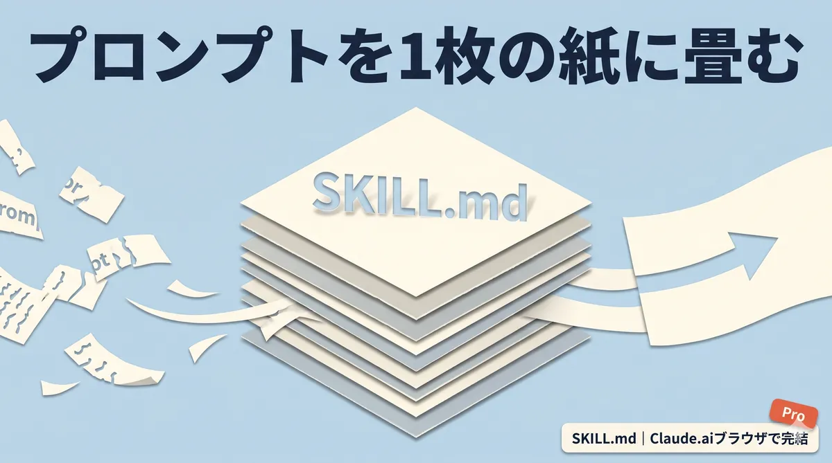 この記事の結論 Claude SkillsはAnthropicが2025年10月16日に発表した「SKILL.md 1枚で同じ依頼の手順を永続化する仕組み」 Simon Willisonは公開当日に「awesome, maybe a bigger deal than MCP」と評価。OpenAIも2025年12月に同一仕様を採用 非エンジニアがProプラン(月20ドル)でClaude.aiブラウザから始める最短ルートは Settings → Capabilities → Skills のZIPアップロード ...