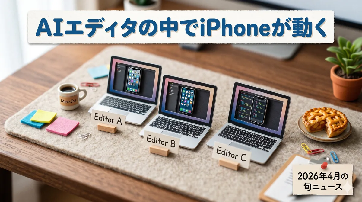 この記事の要点 2026年4月、ExpoのEvan Bacon氏がClaude Code・Codex・Cursorの3大AIエディタ全部でiPhoneシミュレーターを画面内に統合するデモを公開した 共通基盤はExpo MCP Server。AIエディタ側の違いに関係なく、Mac上のiOSシミュレーターをAIから操作できる構図 非エンジニアの副業志望者から見て「実機確認で詰まる」壁が一段下がった瞬間の旬ネタだと私は見ている Claude Code・Codex・Cursorの3つ全部で、iPhoneシミュレー ...