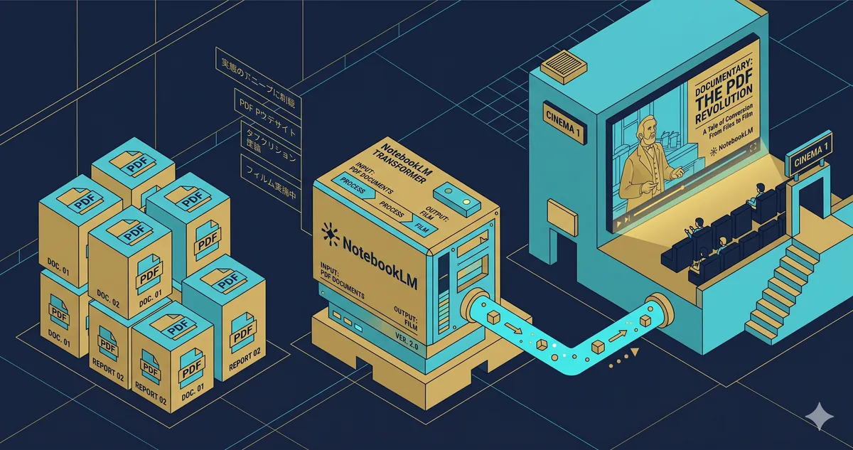 PICKUPNotebookLM Cinematic Video Overviews資料をアップするだけで映画風の解説動画が自動生成Gemini 3 + Veo 3AI Ultra限定英語のみ対応 NotebookLMに資料をアップロードするだけで、映画みたいな解説動画が自動で作れます。 しかもスライドショーじゃない。 流れるようなアニメーションと、プロのナレーションで構成された、ドキュメンタリー風の動画です。 2026年3月4日にGoogleが発表した「Cinematic Video Overviews ...